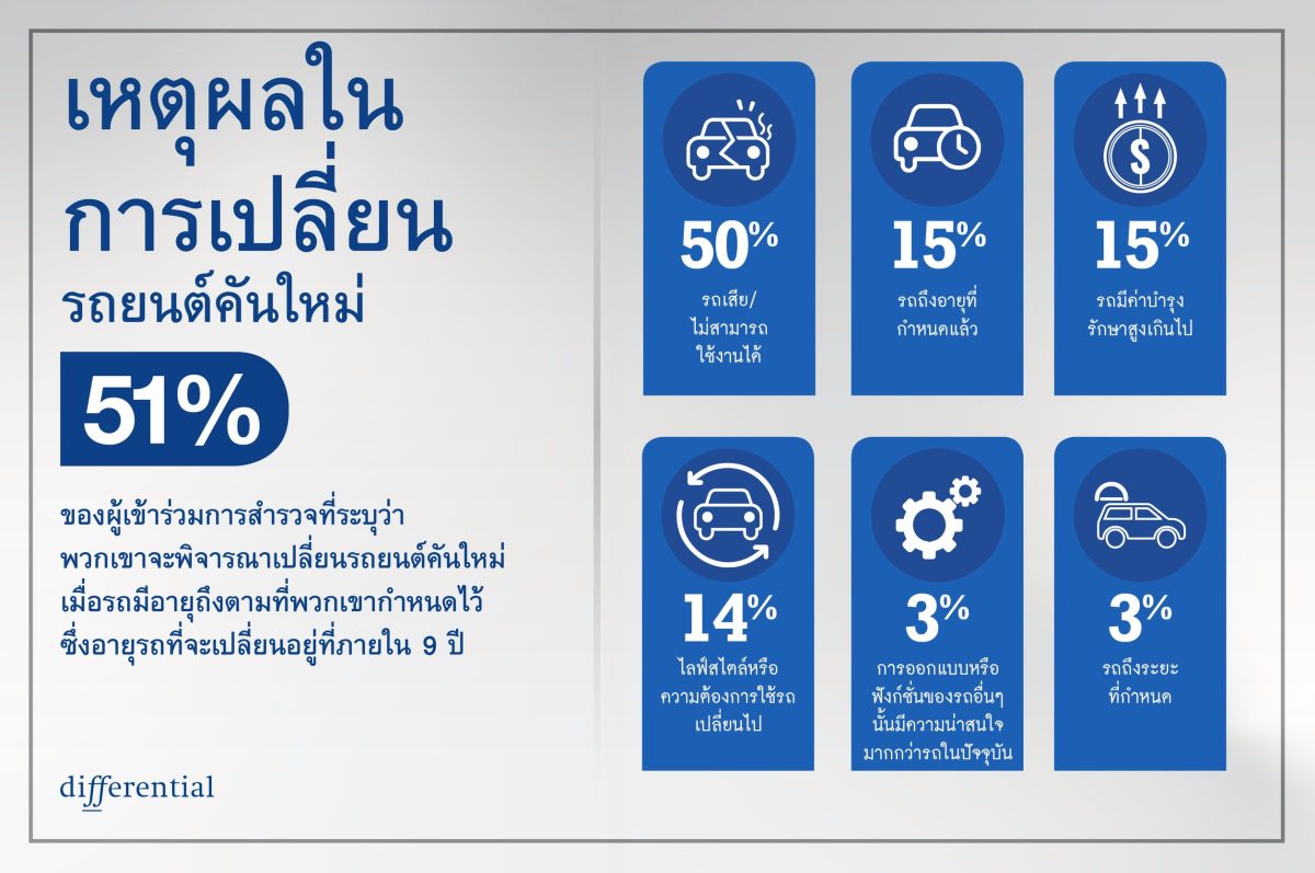 บริษัท ดิฟเฟอเรนเชียล (ไทยแลนด์) จำกัด บริษัทที่ปรึกษาและวิจัยการตลาดชั้นนำ เปิดเผยรายงานการวิจัย “2025 Voice of Consumers: Stay vs Switch” ซึ่งชี้ให้เห็นถึงการเปลี่ยนแปลงพฤติกรรมครั้งใหญ่ของผู้ใช้รถยนต์ชาวไทยหลังตลาดรถยนต์ไฟฟ้า (EV) ขยายตัว และมีแบรนด์ใหม่ ๆ เข้ามาแข่งขัน ซึ่งมีทั้งดีไซน์ และเทคโนโลยีที่มีความน่าสนใจ ส่งผลให้ลูกค้าเกิดความไม่แน่ใจว่าจะภักดีกับแบรนด์เดิมต่อไป หรือไม่